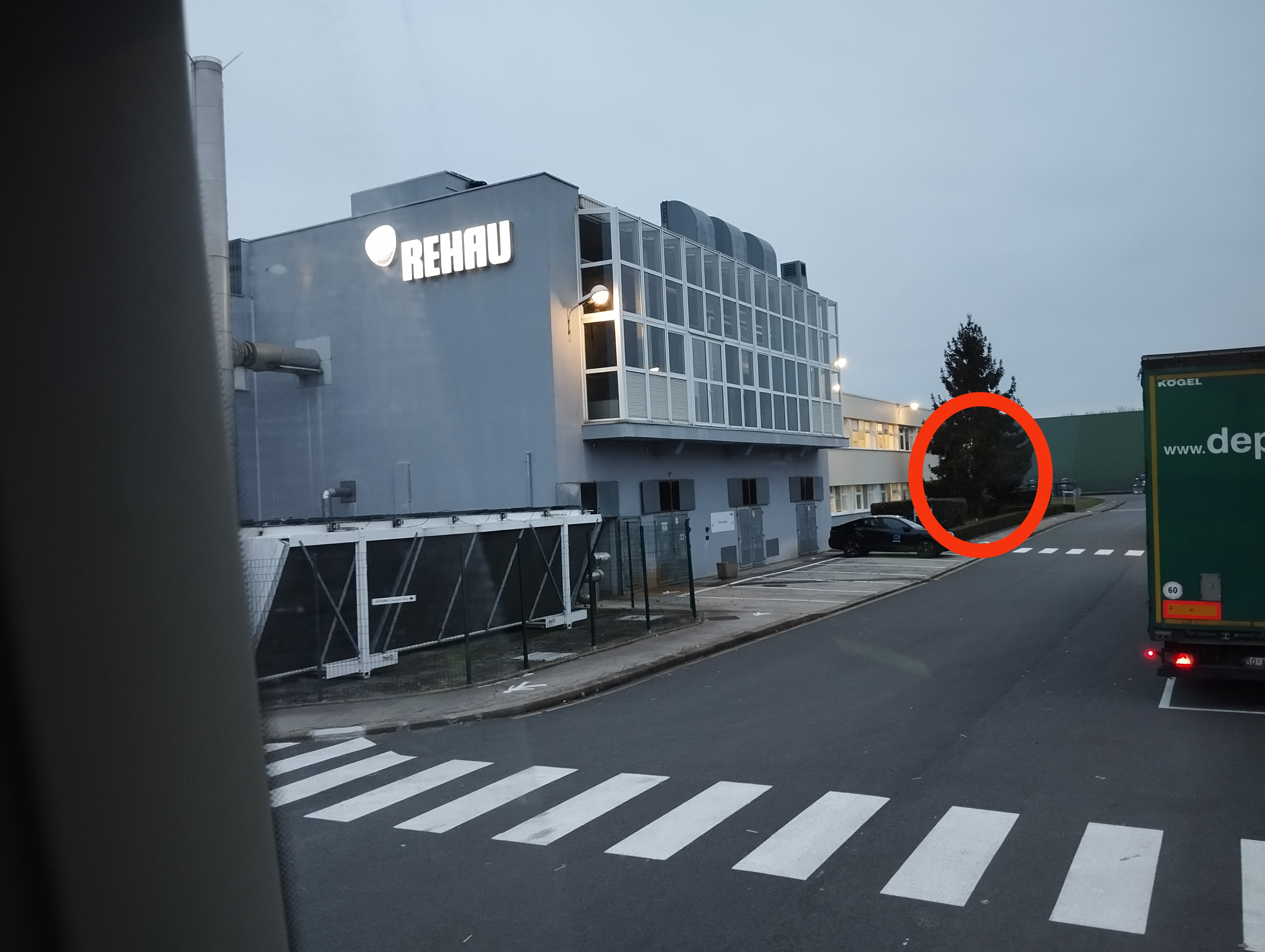 Si vous commandez le chargement du SMR vous-même et au bureau (cercle rouge sur la photo), ils vous diront d'attendre, le chauffeur du camion vous appellera en chargeant par le côté. Après le chargement, rendez-vous au bureau pour récupérer les documents. L'accès à l'entreprise est facile, les gens sont sympas. Je n'ai vu ni douche ni toilettes. Grand parking à 6 km sur A29.